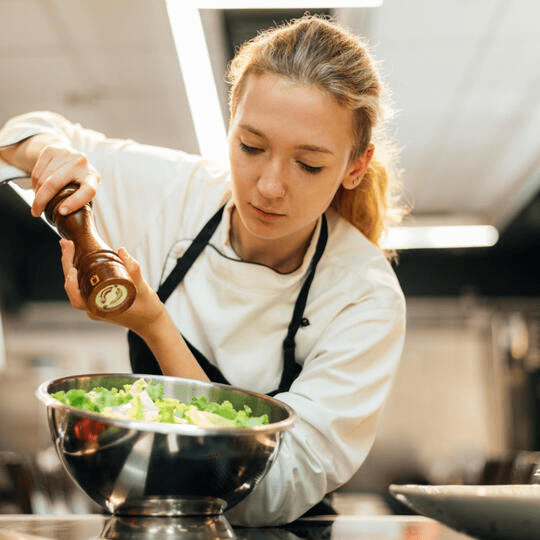 Dies ist der klassische Weg. Du kochst direkt in den Küchen deiner Kund:innen und bietest dort unsere Pakete "Klassik" (flexible Wochentags-Gerichte) oder "Signature" (besondere Anlässe) an.
